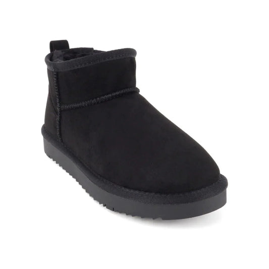 Bottines femme noires fourrées, semelle crantée plate, imitation daim, style hiver chaud