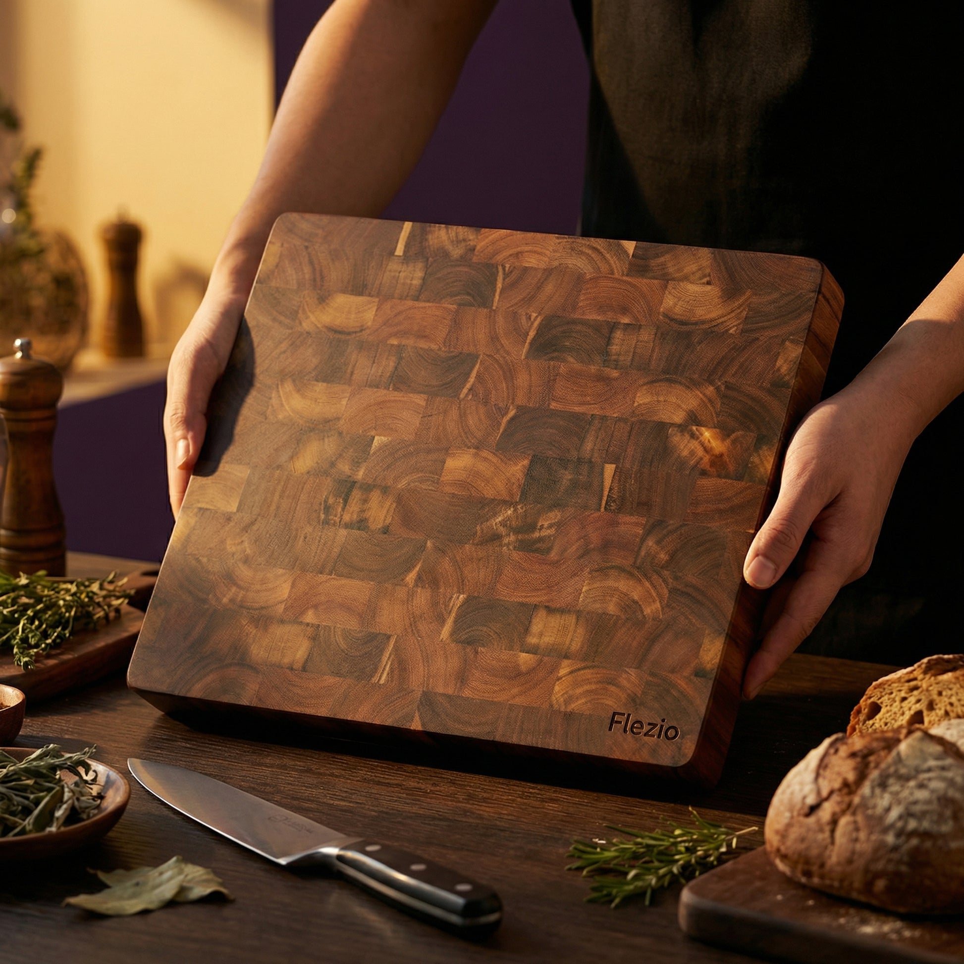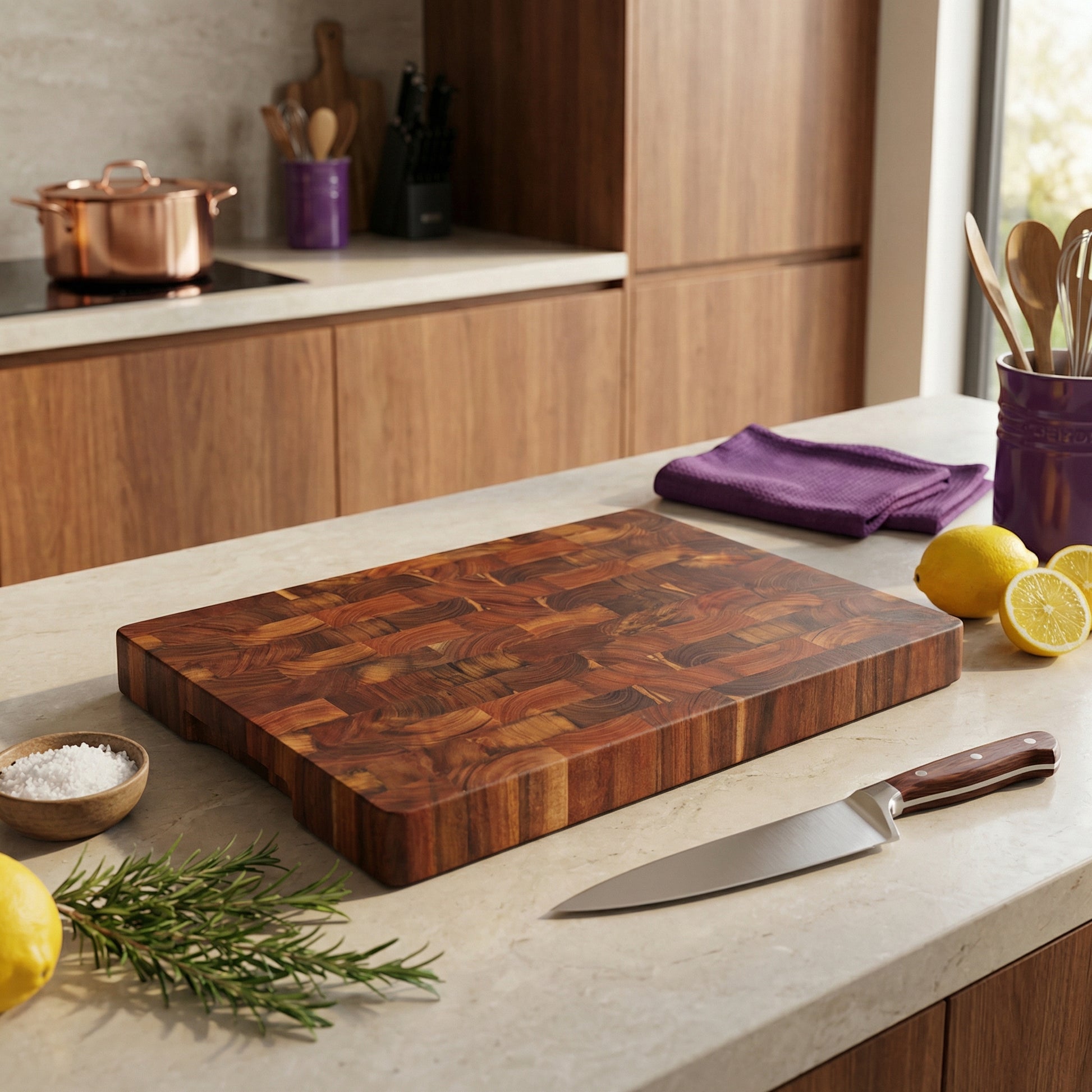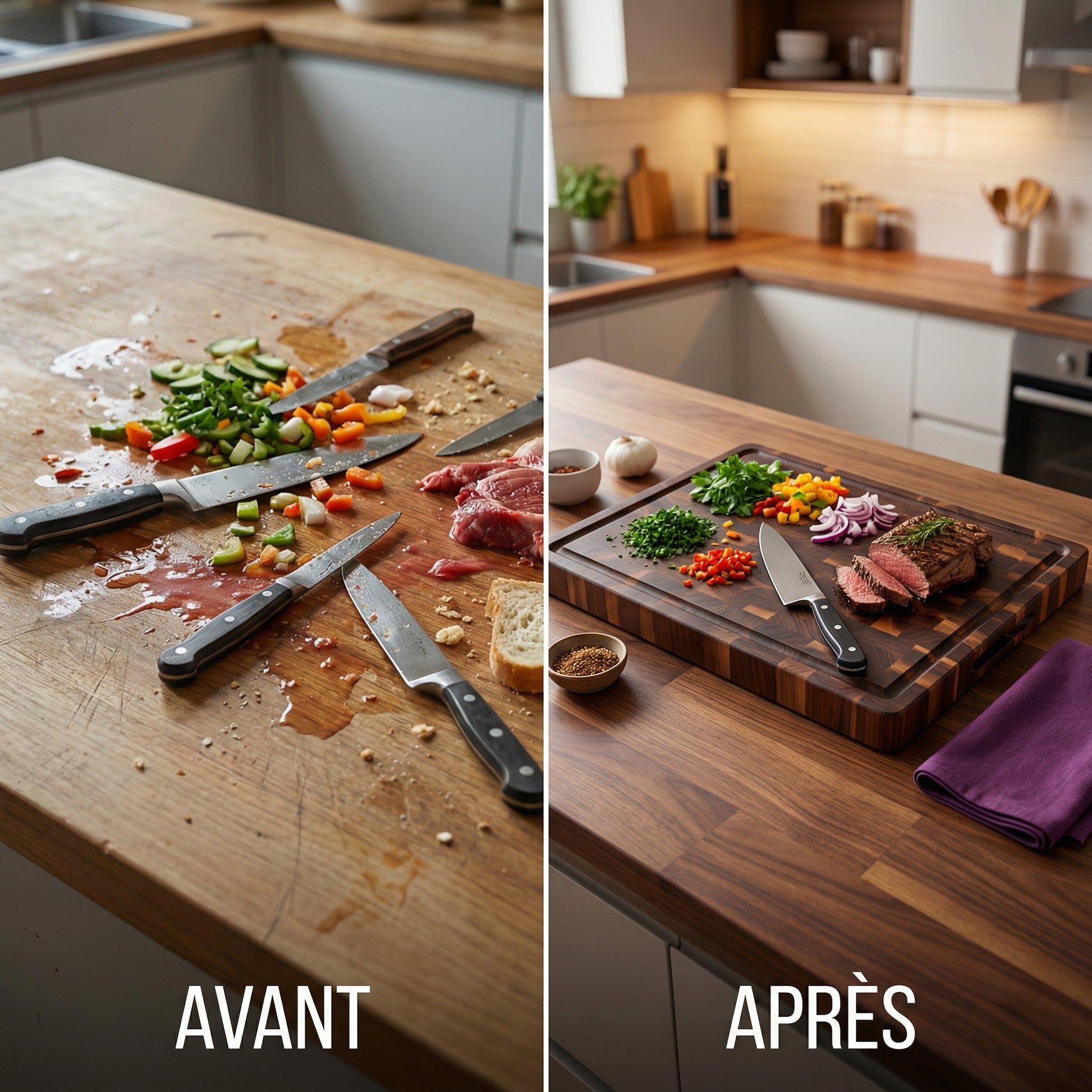 ✅ Acacia Massif : Un bois dur et durable qui résiste naturellement aux marques de couteaux.