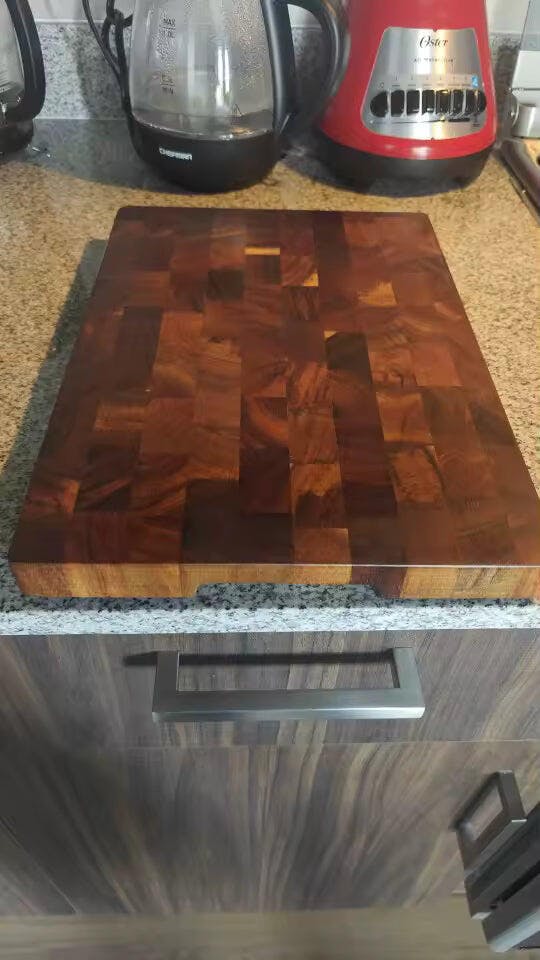 J'ai reçu mon colis hier. Le bois d'acacia est magnifique et vraiment épais. On sent tout de suite la robustesse de l'objet. Parfait pour mes préparations quotidiennes.