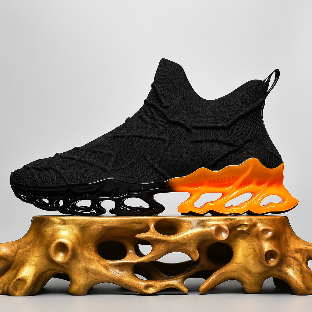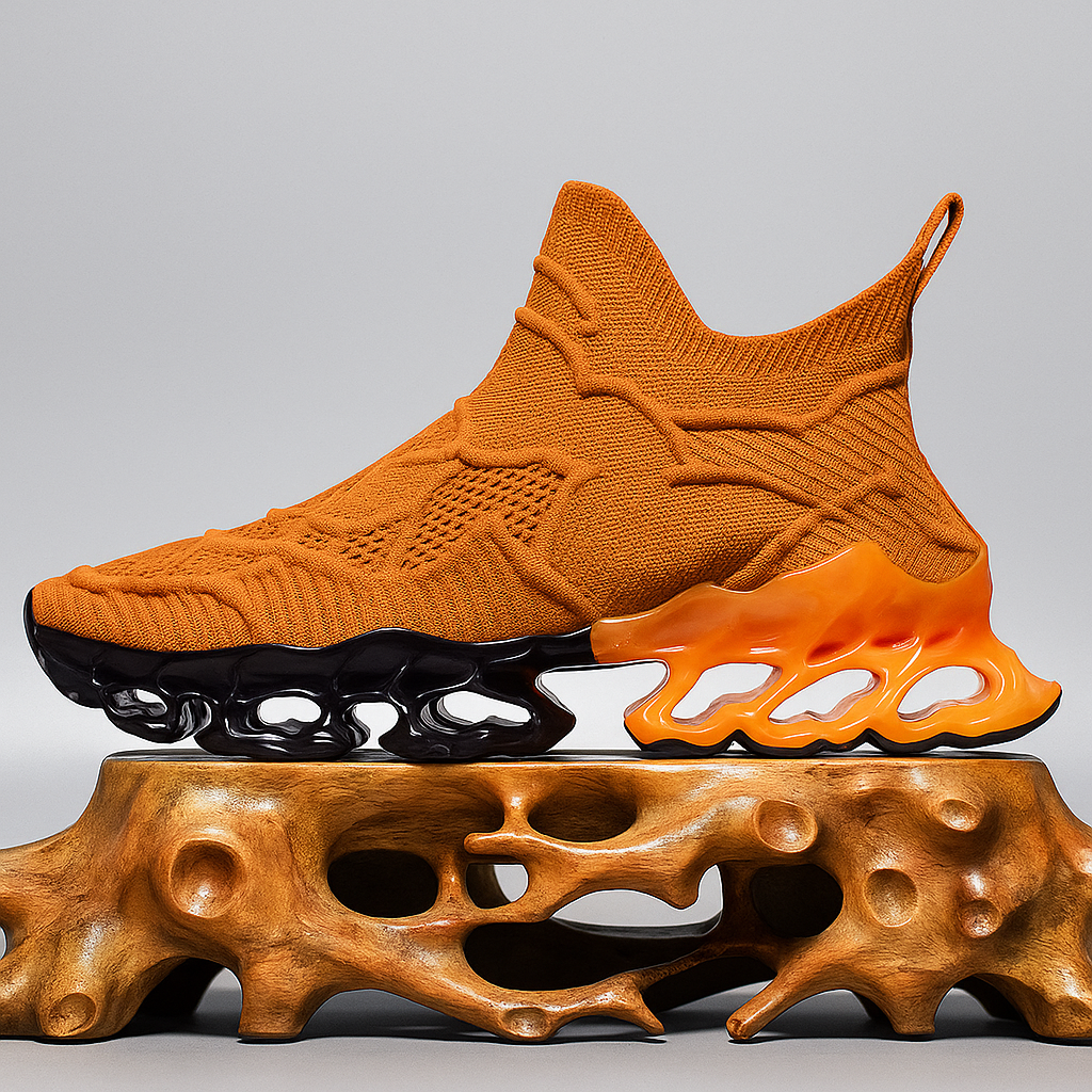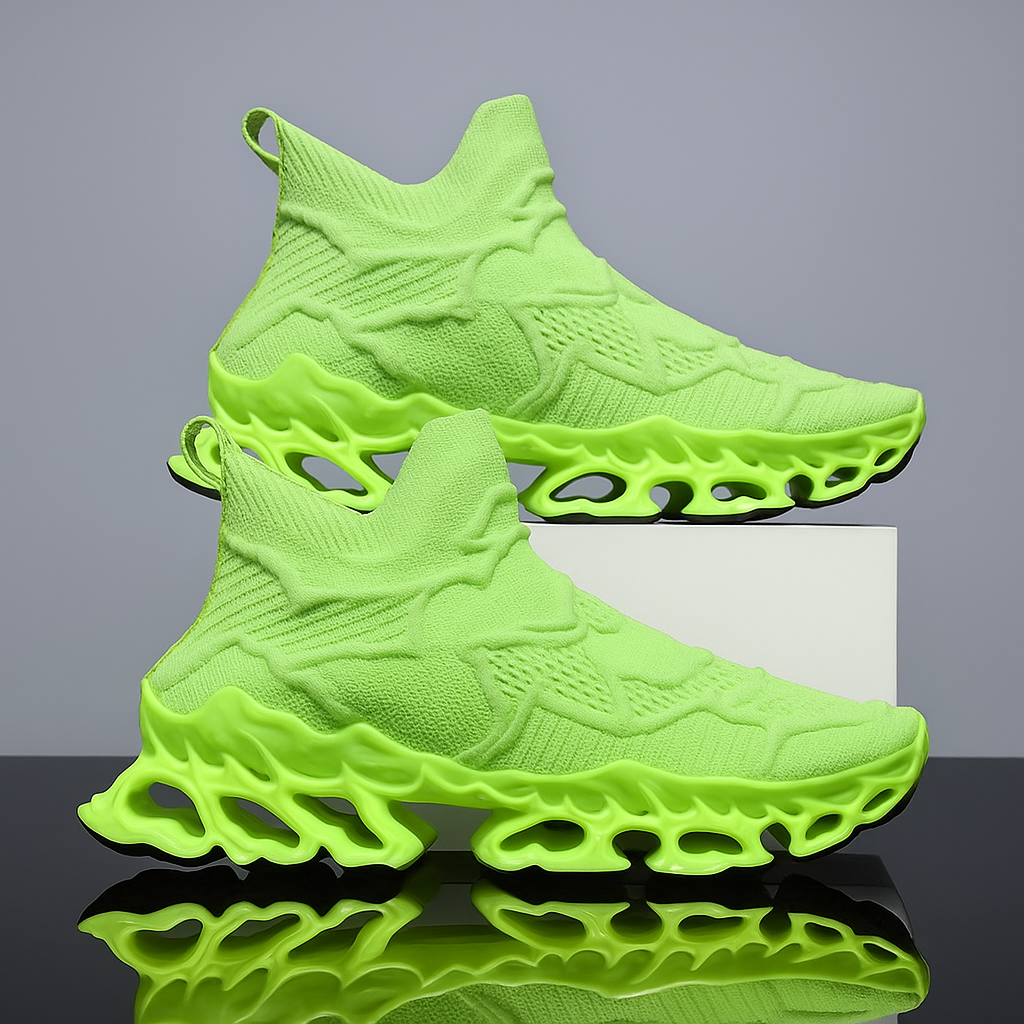 Baskets de running homme au design futuriste entièrement rouges, alliant confort et style. Leur tige en maille extensible et respirante épouse la forme du pied, tandis que la semelle ajourée en TPU assure légèreté, amorti et stabilité. Ces sneakers sans lacets sont idéales pour les activités sportives ou les tenues urbaines décontractées.